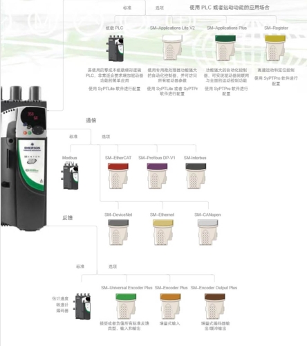 卡扣式選配模塊可幫助您根據(jù)自己的需要定制驅(qū)動(dòng)器提供 18 種不同選項(xiàng),包括 Fieldbus、以太網(wǎng)、I/O、反饋附件和自動(dòng)化控制器。